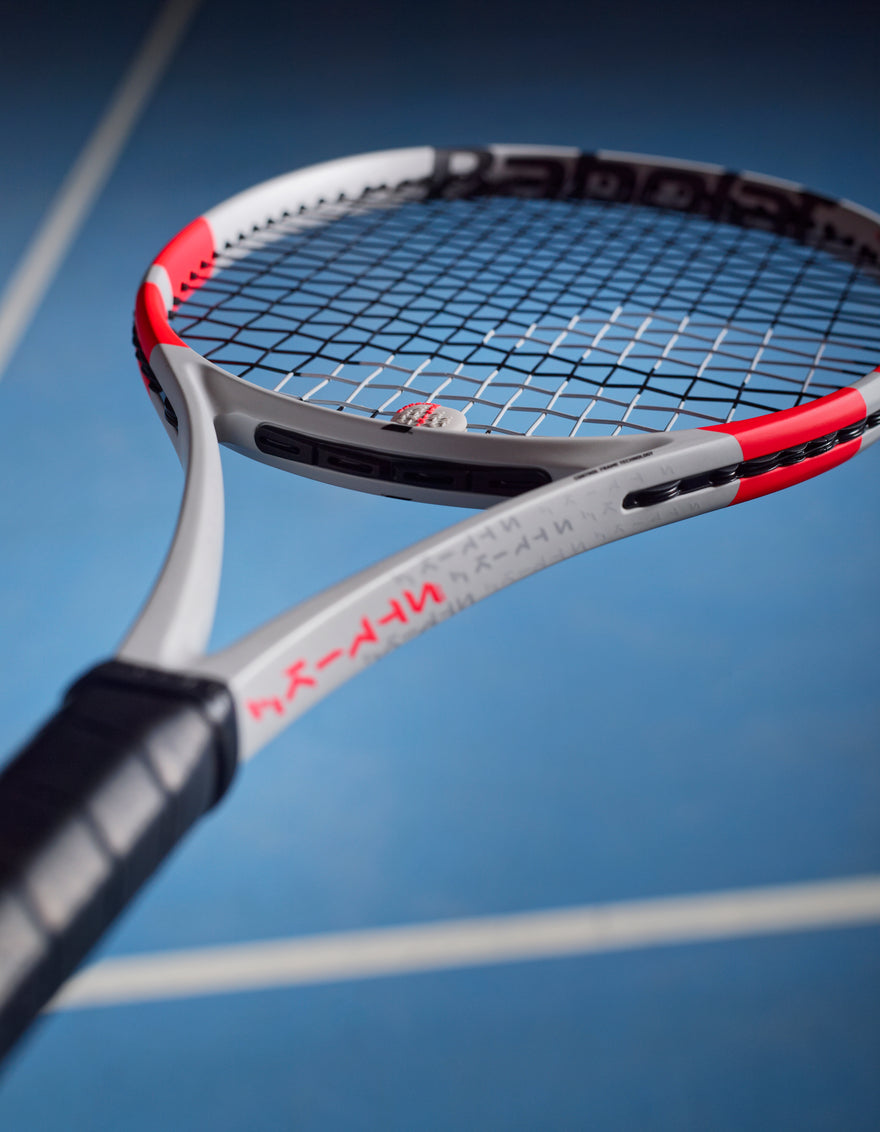 To strike the ball on the rise for fast play that gives your opponent less time to react, you need millimetre precision. This tennis racquet has been specially designed for this purpose with a smaller head, an optimised string pattern and a thinner section.