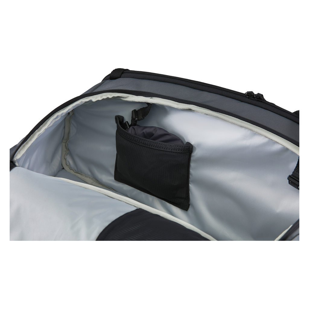 There’s a detachable bag for sweaty clothes, along with larger outside compartments on both sides, and accessory pockets inside and out.