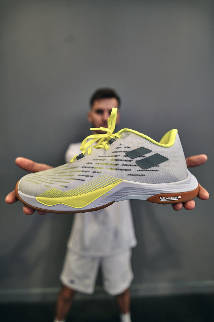 Babolat have a long relatiosnhip with Micehllin and provide some of the best indoor court shoes on the market.