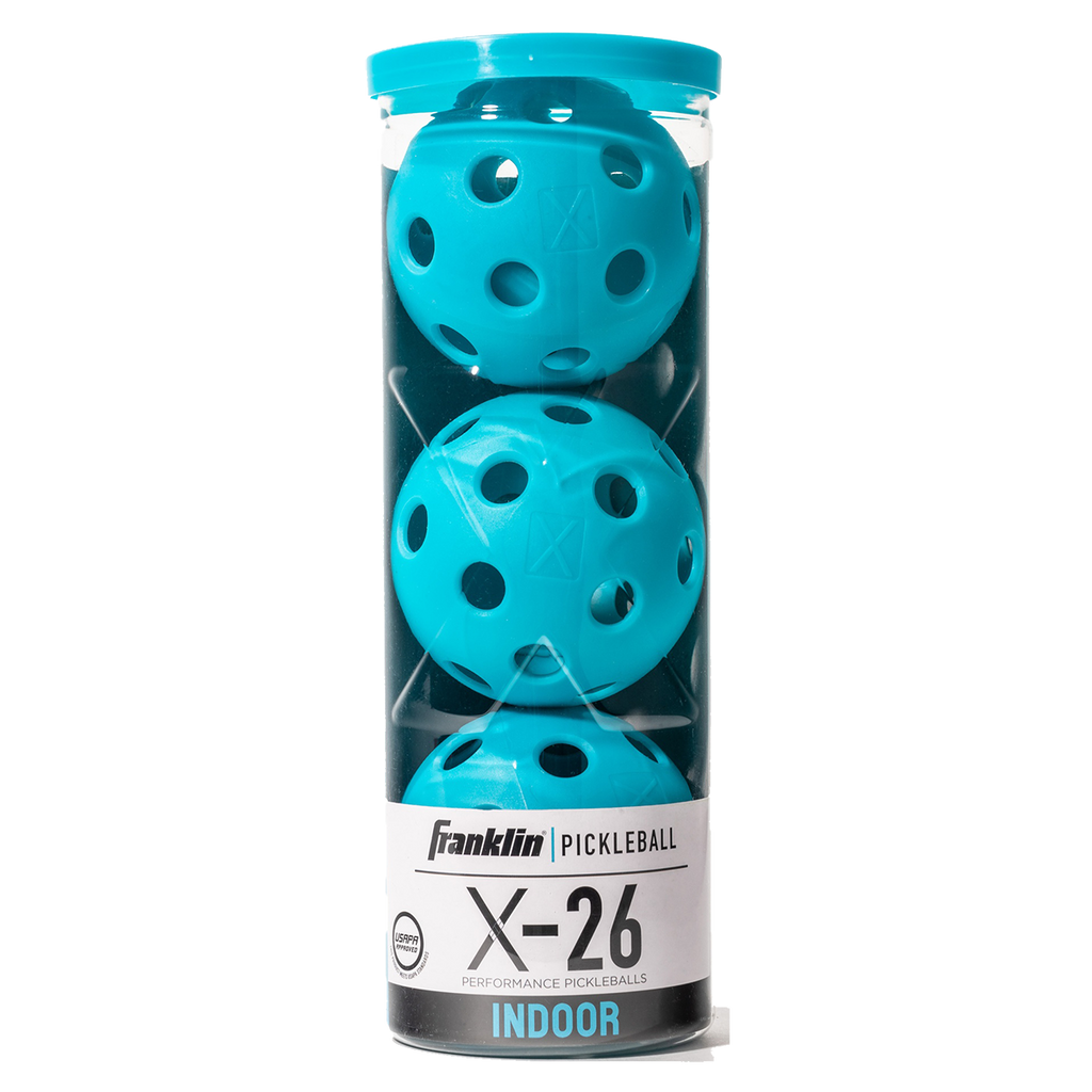 The Franklin X-26 indoor model has been specially crafted for outstanding performance on all indoor pickleball court surfaces. The solid two-piece construction and bevelled holes ensure that the X-26 pickleballs are constructed for premium durability and playability. These indoor pickleballs are designed with 26 precise holes to ensure even rotation, spin and bounce for consistent play from match to match. Perfect for both training and competitive matches, the X-26 is USA Pickleball (USAPA) approved for tournament play.
