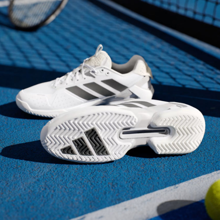 Engineered for rapid response on hard courts, the Adidas Men's Adizero Ubersonic 5 Tennis Shoes combine a reinforced lightweight mesh upper with a responsive Lightstrike midsole for exceptional court feel. The Speedframe outsole delivers superior heel stability during lateral movements, ensuring confident footwork throughout extended rallies. These performance shoes offer the perfect balance of agility, support, and durability for competitive players seeking split-second reaction time.