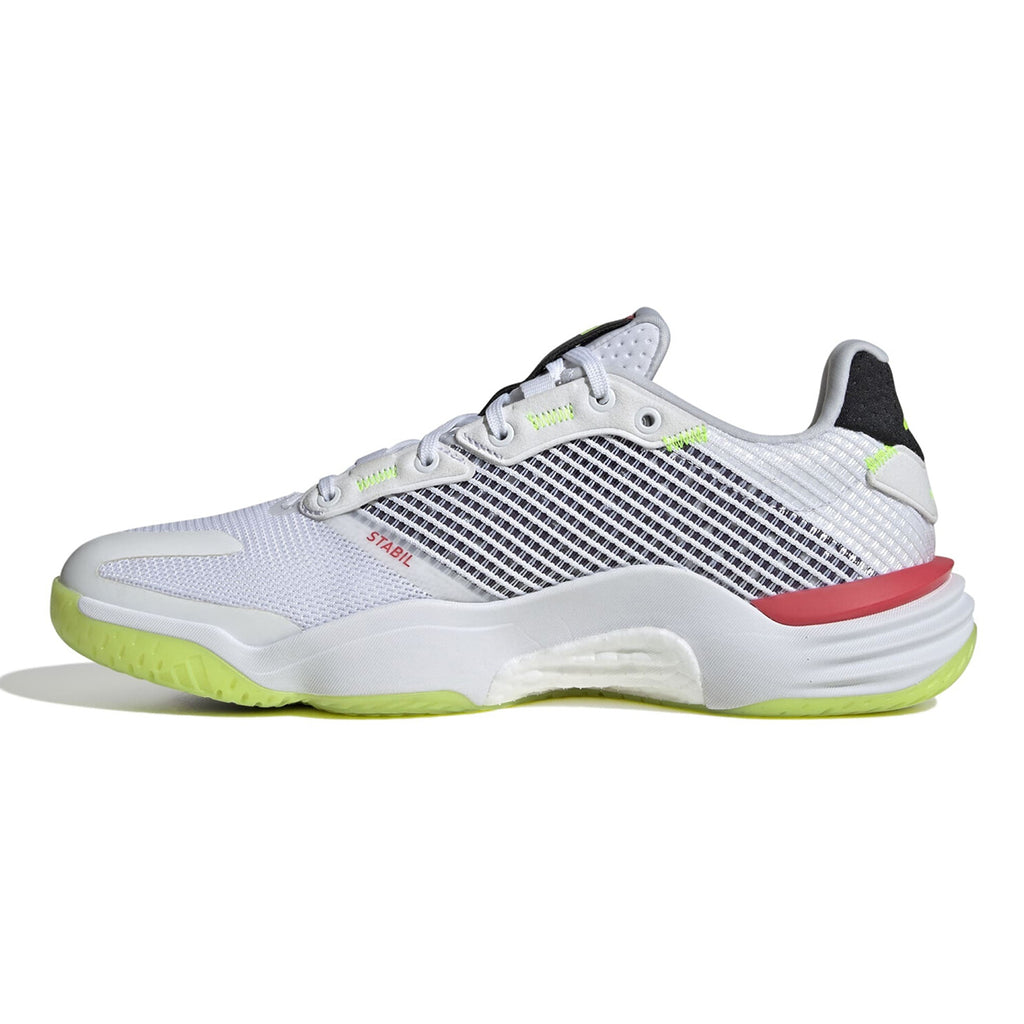 Get to every shot in the Adidas Stabil 16 Indoor Court shoes. The adidas BOOST midsole provides maximum energy return with each move while the chassis construction locks you in for dynamic change of directions. A mesh upper and tongue keep the foot ventilated during intense play.