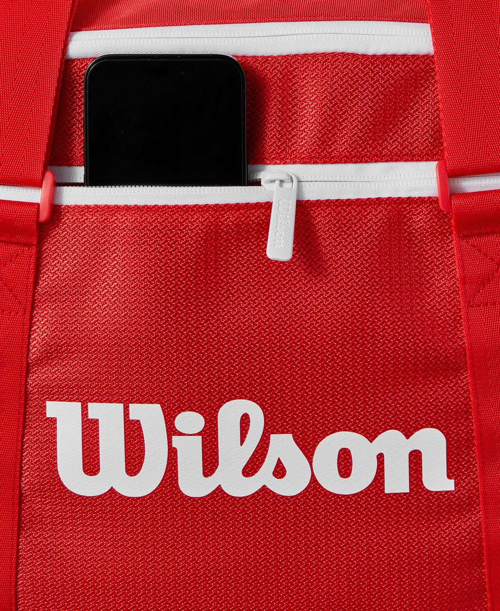 The Wilson Super Tour Red Small Duffle is ideally suited for avid players who need extra carrying capacity for extra gear and shoes. A perfect tournament travel companion to one of the Super Tour Red racket bags, it's also a great alternative for practice sessions, when players prefer to travel light to the courts. In addition to the dedicated shoe compartment and side pocket for smaller items, the duffle has a new separate compartment designed for a tennis racket. Padded carry handles make it comfortable and easy to haul.